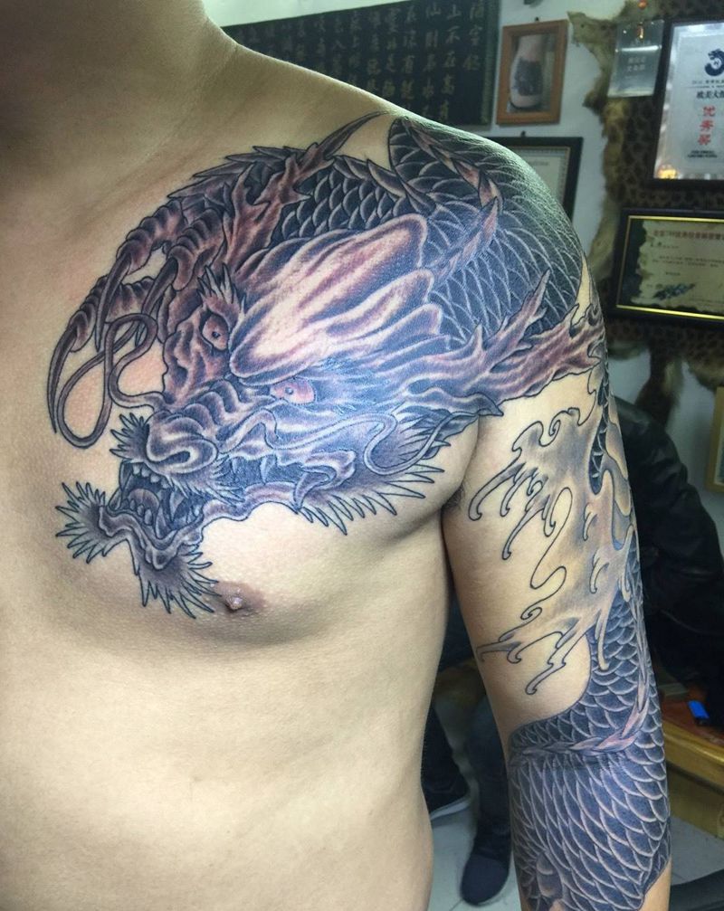 当前位置: 首页 >江苏省常州市纹身店-常州-天津纹身艺术馆纹身图案>过肩龙纹身图片