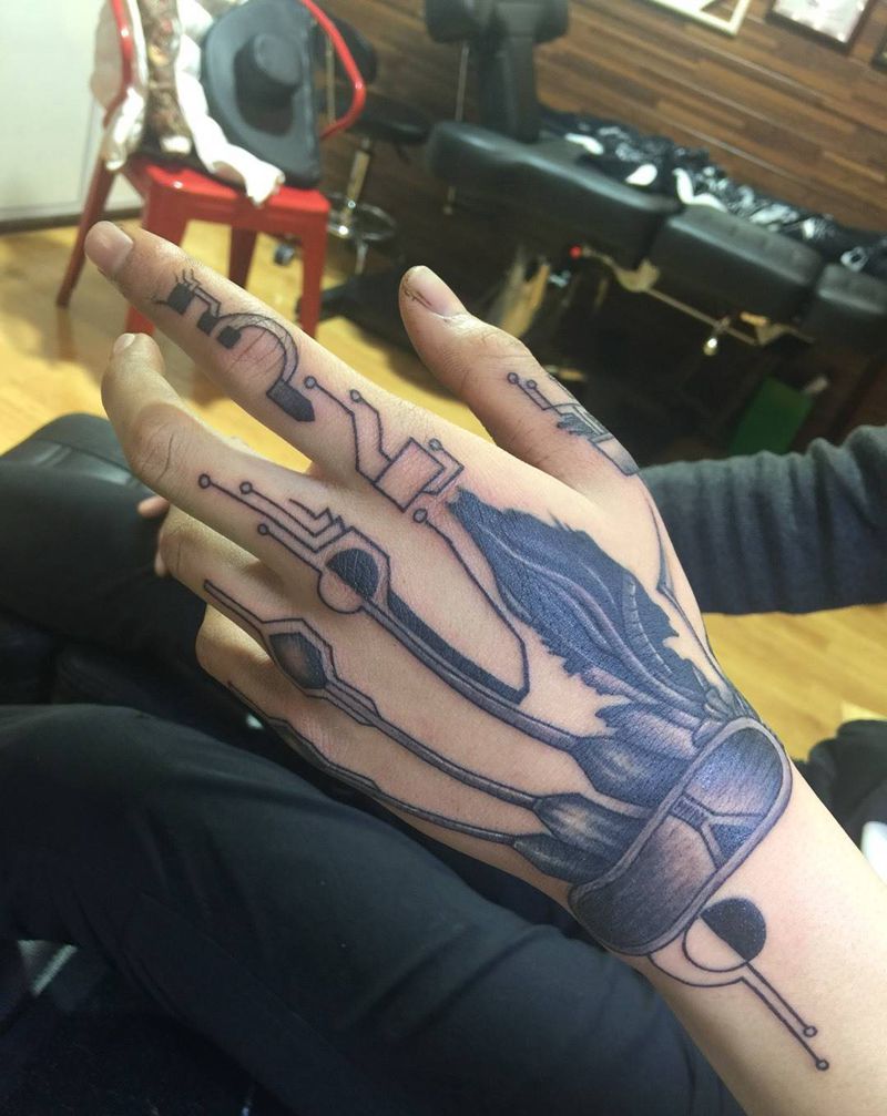 • 手背潮流时尚的玫瑰花眼睛纹身图案