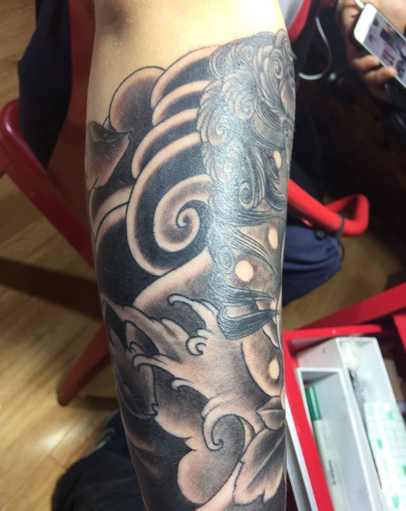 • T网红王老大花腿龙纹身图片_腿部新传统纹身图案