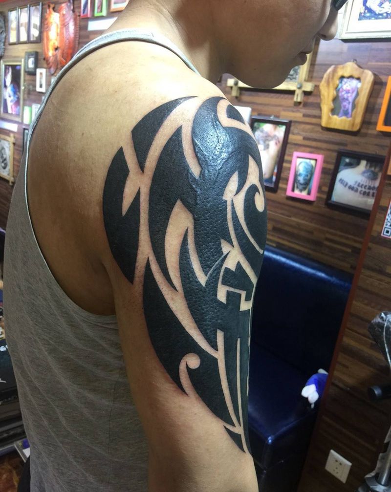 • 纹身吧推荐的披肩图腾半胛纹身图案作品展示