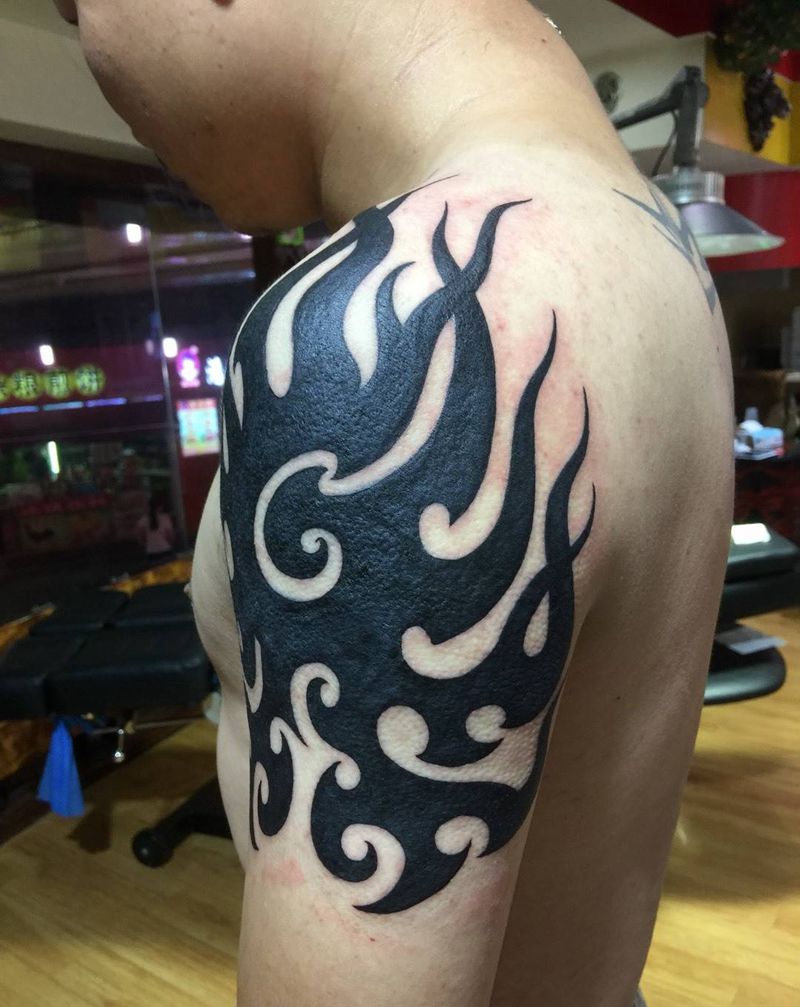 • 纹身吧推荐的披肩图腾半胛纹身图案作品展示
