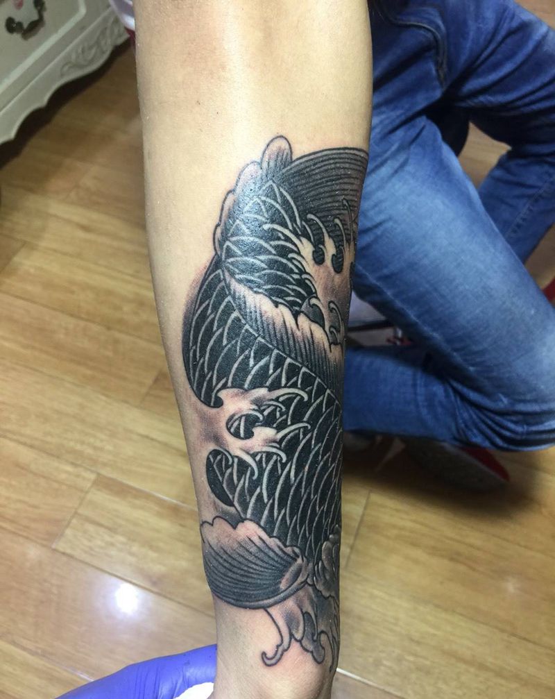 • T网红王老大花腿龙纹身图片_腿部新传统纹身图案