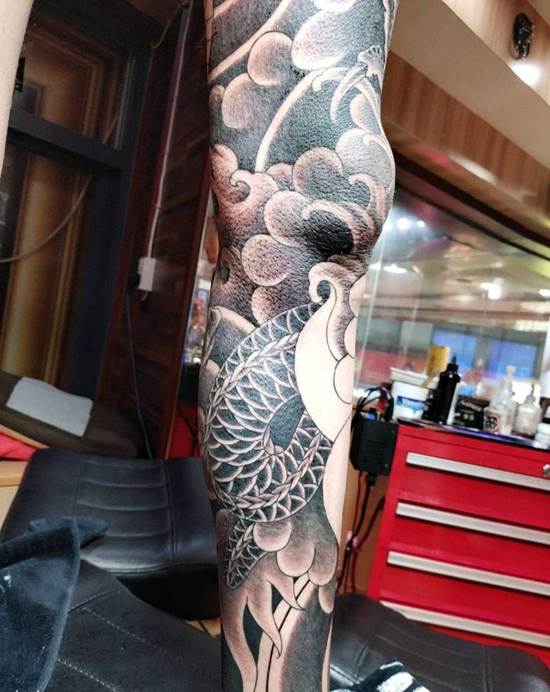 • T网红王老大花腿龙纹身图片_腿部新传统纹身图案