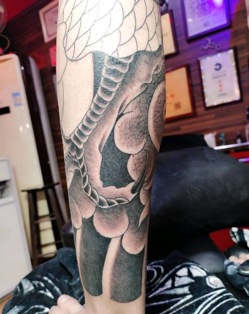 • T网红王老大花腿龙纹身图片_腿部新传统纹身图案