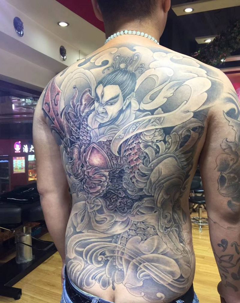 二郎神纹身图片_背部纹身图案