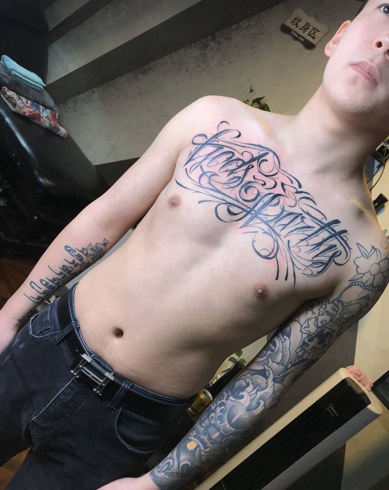 花体纹身图片_胸部花体字花体字纹身图案