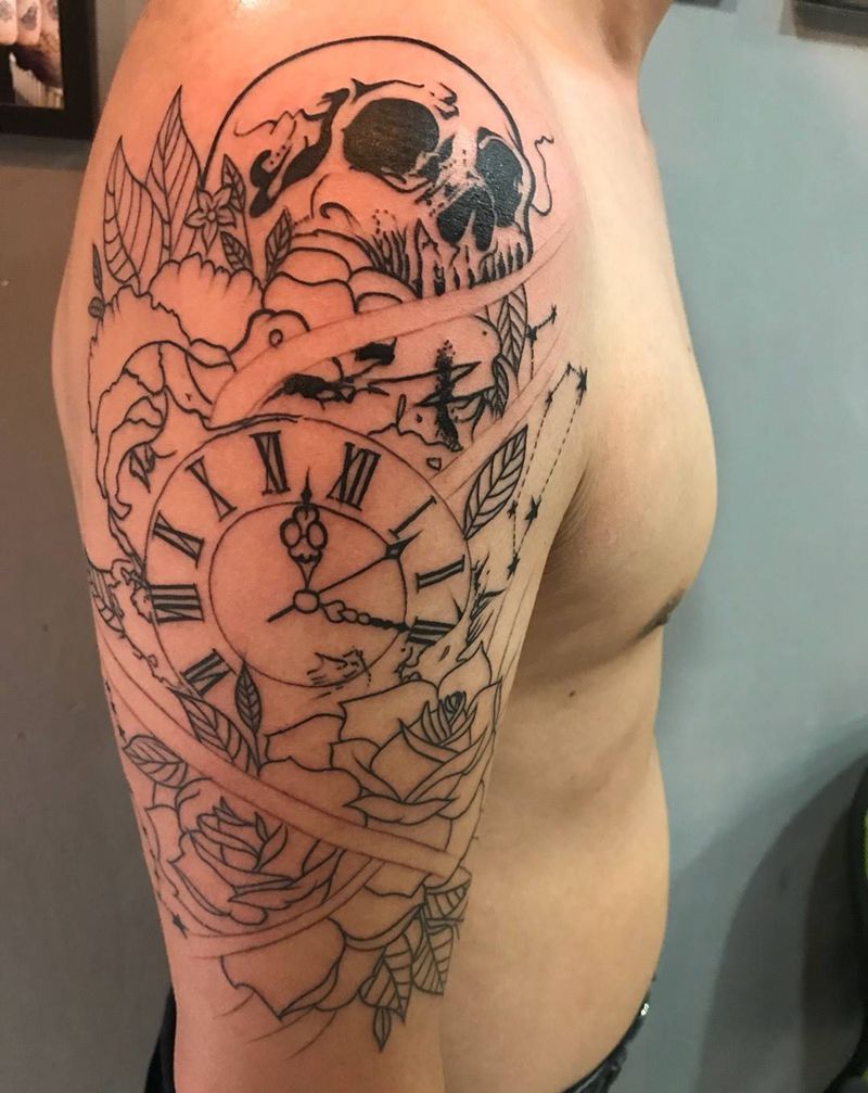当前位置: 首页 >江苏省常州市纹身店-TC刺青纹身图案>骷髅星座怀表纹身图片