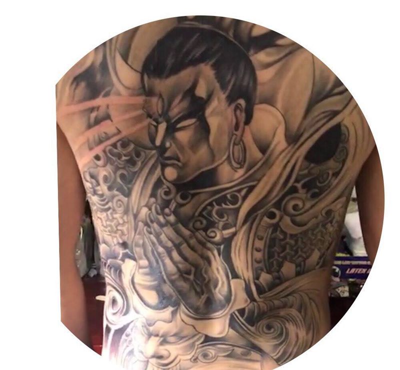 黑灰满背纹身图案