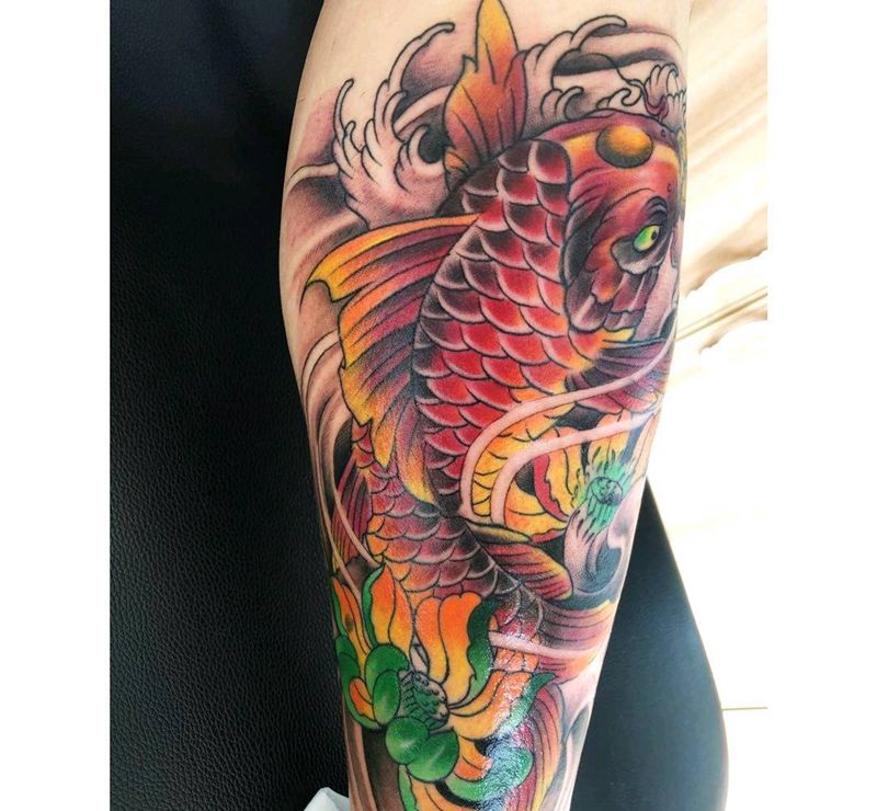 当前位置: 首页 >江苏省常州市纹身店-常州刺青纹身图案>鲤鱼纹身图片_腿部纹身图案