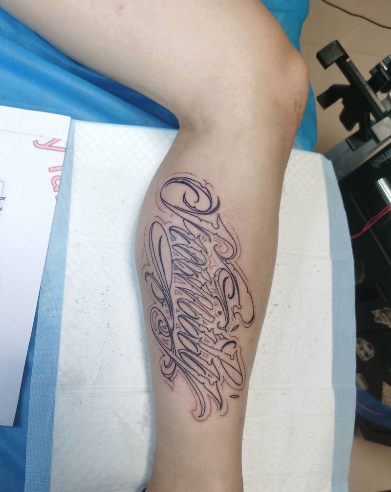 当前位置: 首页 >江苏省常州市纹身店-天一刺青纹身图案>花体字纹身图片_腿部花体字纹身图案