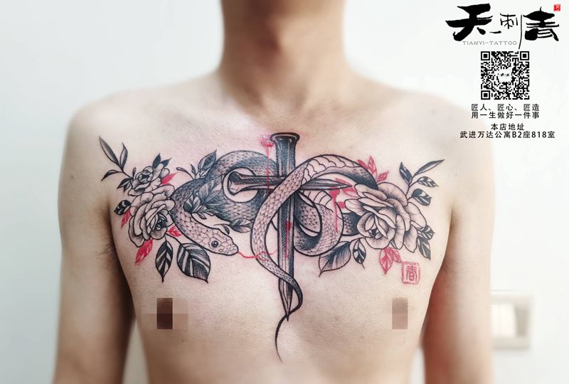 当前位置: 首页 >江苏省常州市纹身店-天一刺青纹身图案>蛇纹身图片_胸部New School欧美写实纹身图案