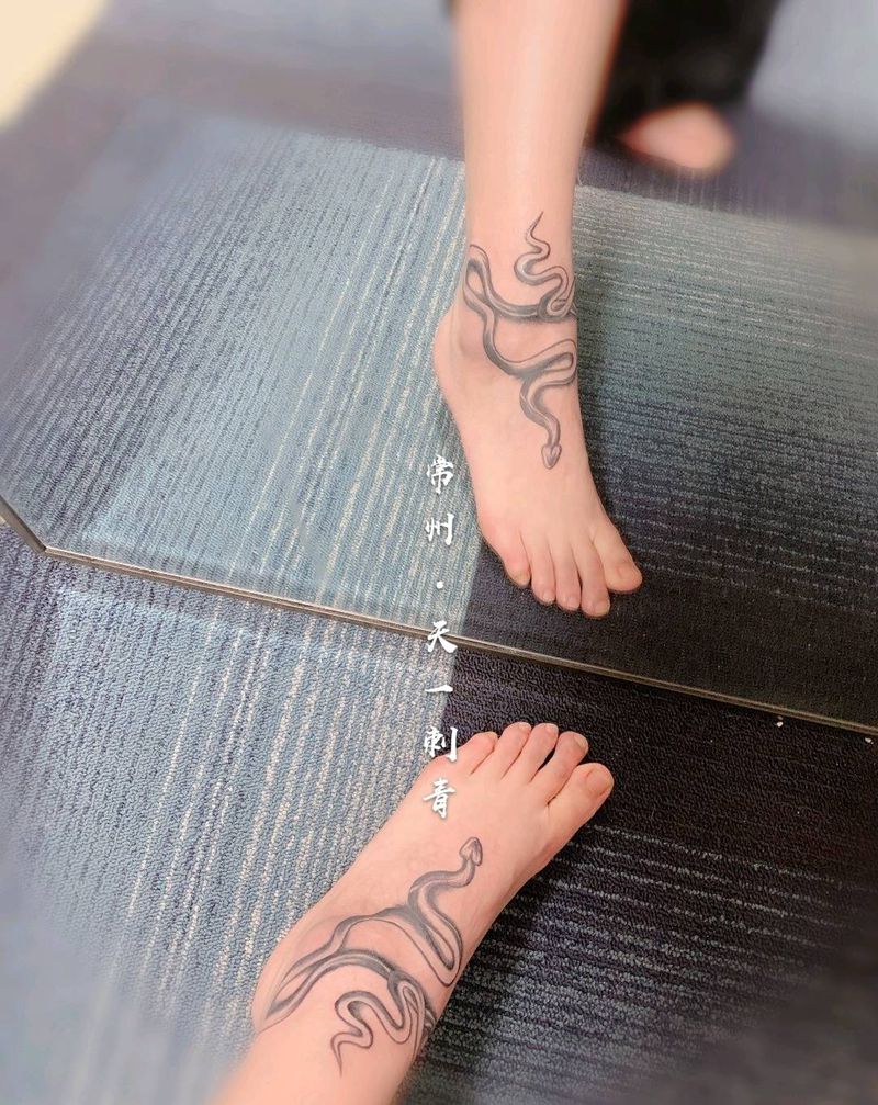 当前位置: 首页 >江苏省常州市纹身店-天一刺青纹身图案>蛇纹身图片_脚部腿部水墨纹身图案