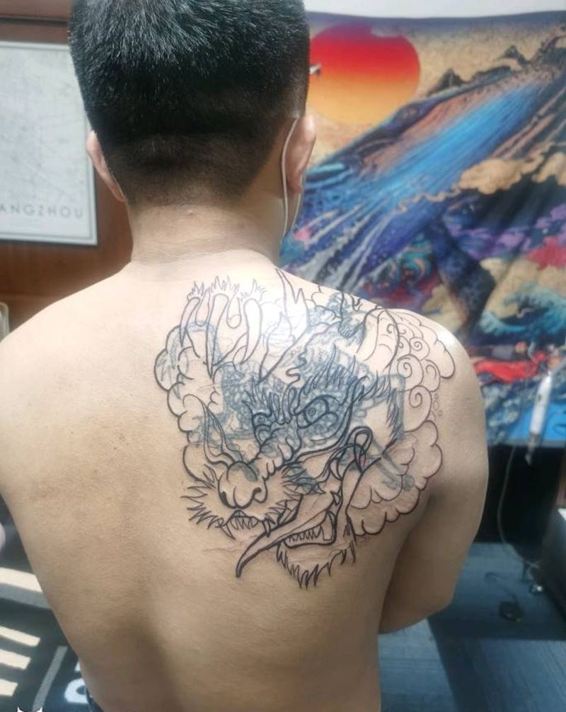 • T云龙九郎纹身图片_背部老传统云龙九郎纹身图案