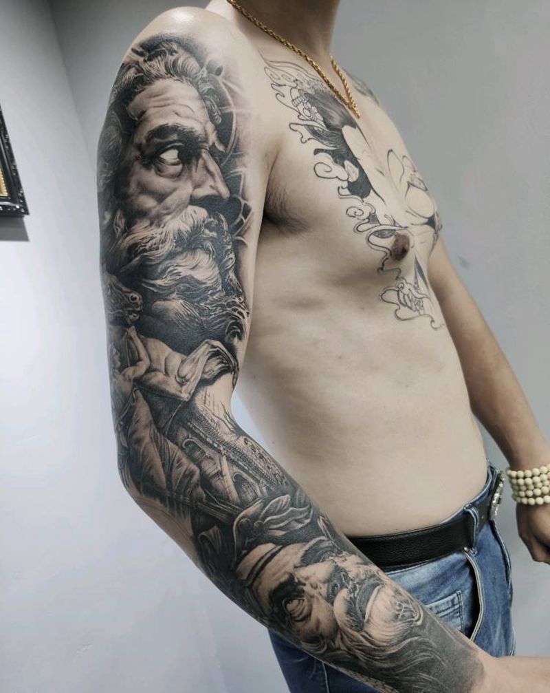 当前位置: 首页 >江苏省常州市纹身店-黑涂刺青纹身图案>雕像花臂纹身图片_手臂欧美写实纹身图案