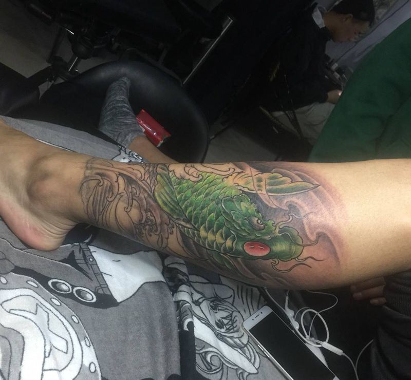 • T网红王老大花腿龙纹身图片_腿部新传统纹身图案