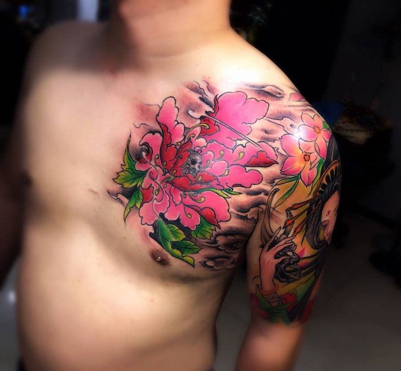 • 女性大花胸纹身_43张霸气漂亮的女性大花胸纹身图案作品