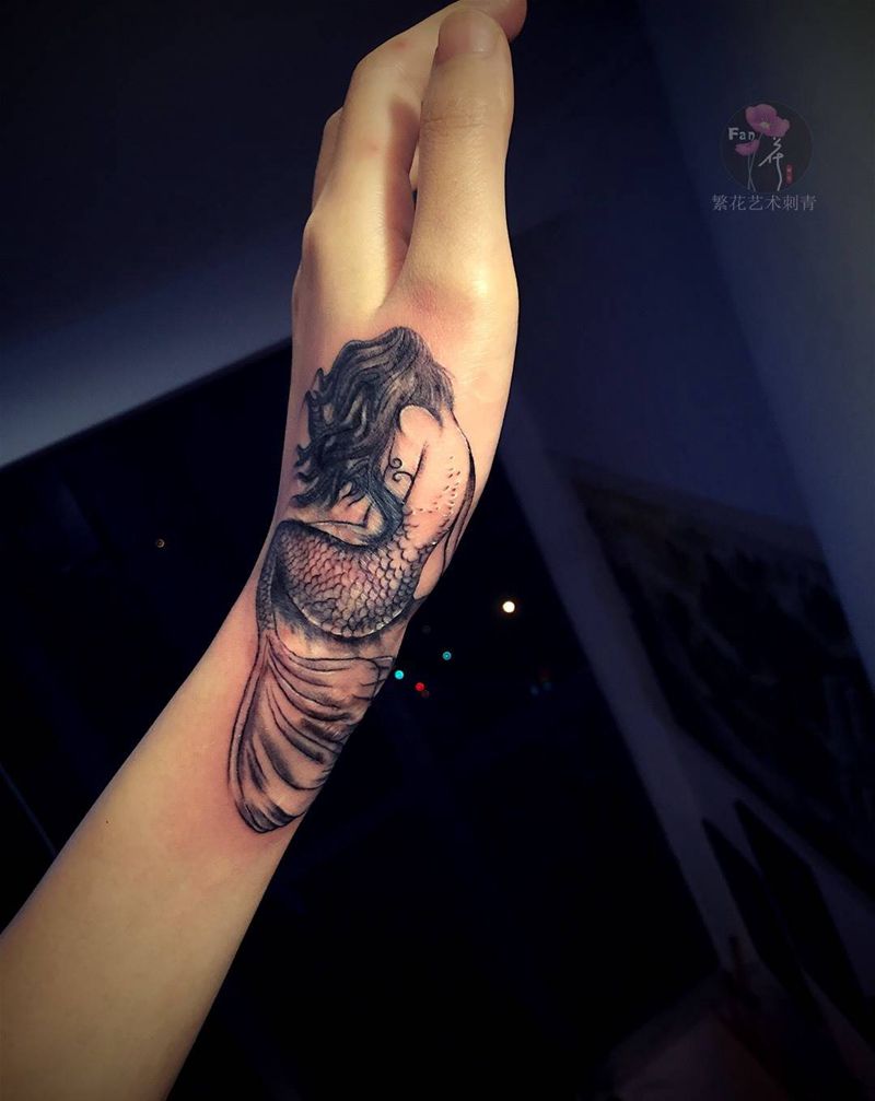 当前位置: 首页 >江苏省苏州市纹身店-苏州繁花艺术刺青纹身图案>美人鱼纹身图片_成品手部肖像动物纹身图案