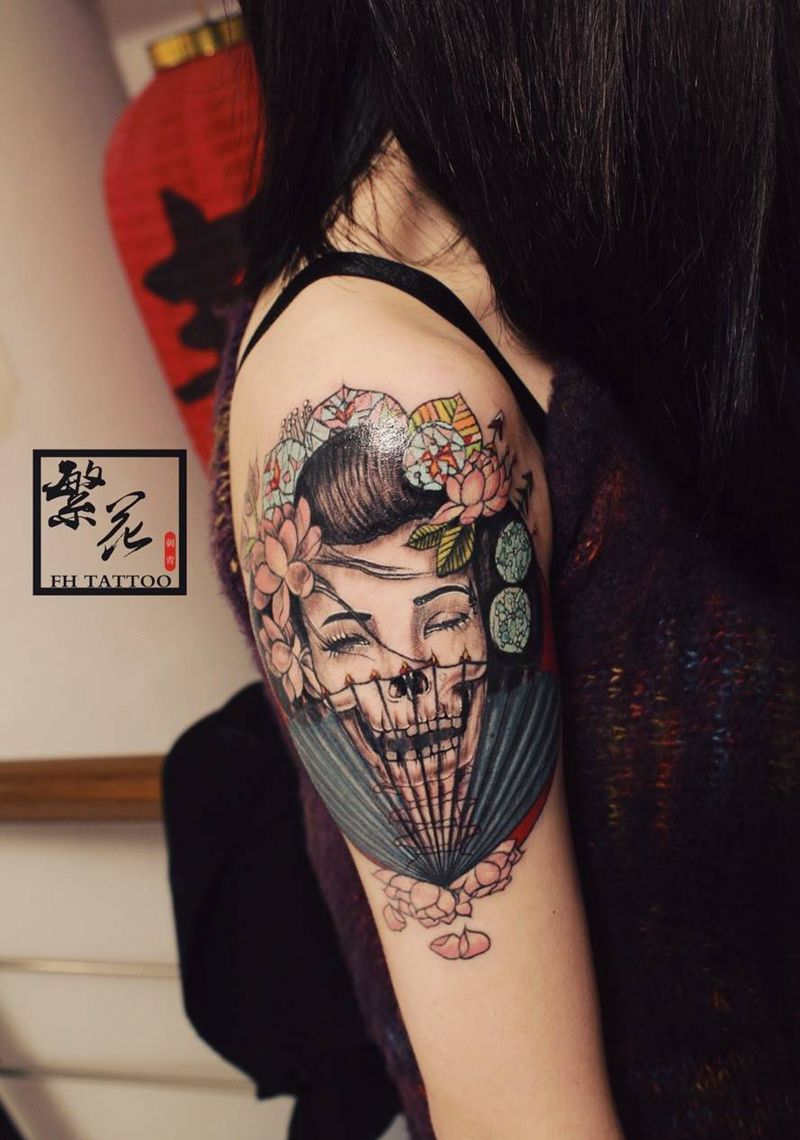 艺妓邪恶纹身图片_欧美手臂人物手部肖像肩部成品写实手稿清新纹身图案