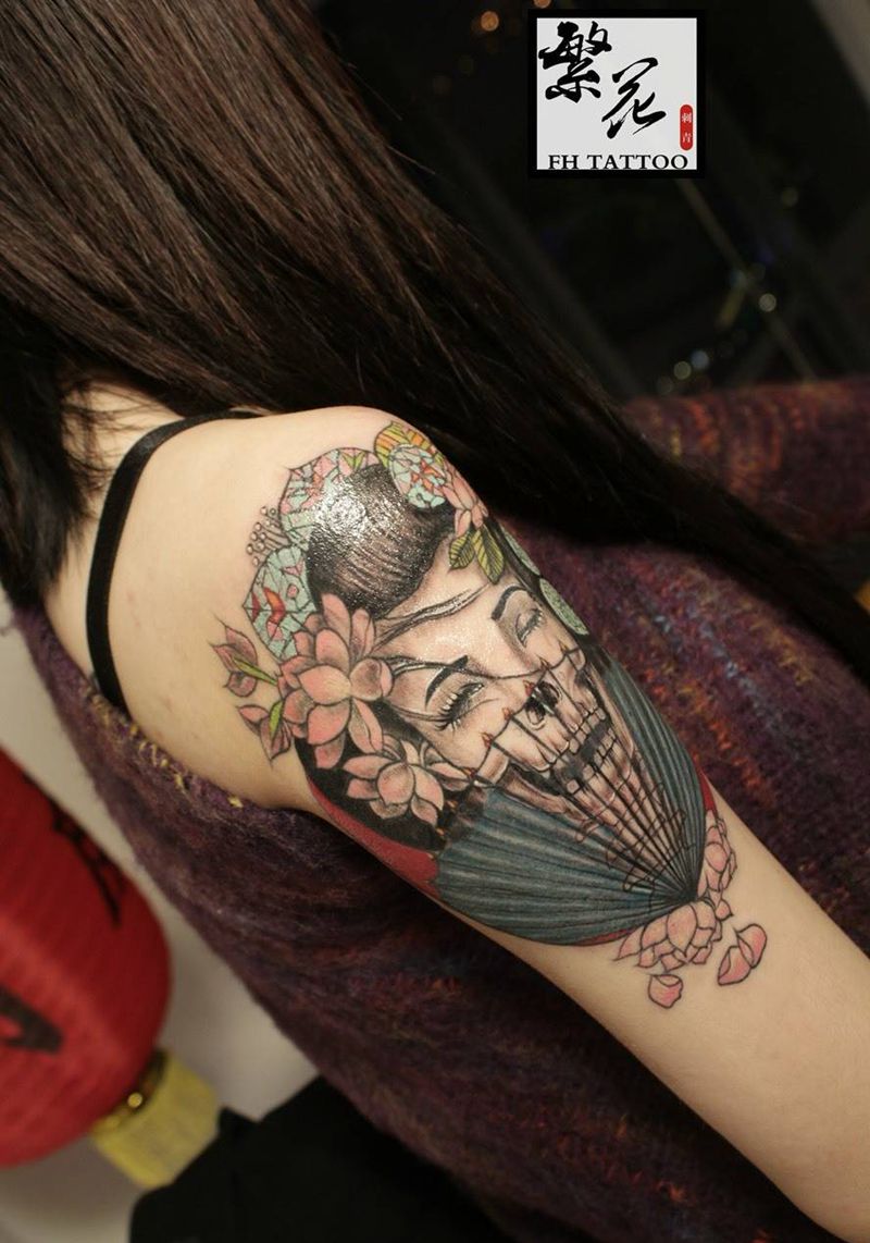 艺妓邪恶纹身图片_欧美手臂人物手部肖像肩部成品写实手稿清新纹身图案