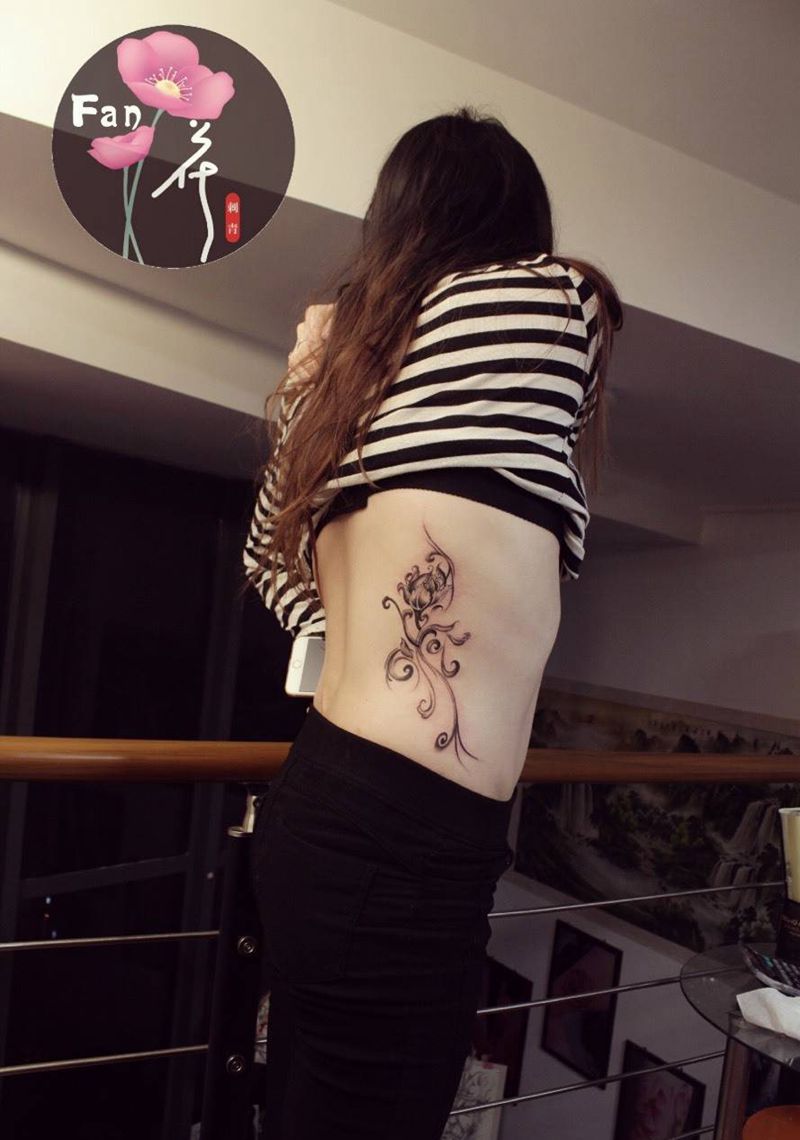 腰部花藤纹身图片_腹部背部腰部臀部成品手稿欧美植物腿部静物纹身图案
