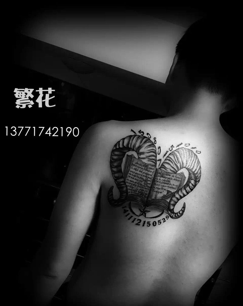 当前位置: 首页 >江苏省苏州市纹身店-苏州繁花艺术刺青纹身图案>羊角书纹身图片_成品手稿肩部背部欧美传统写实国画动物字符纹身图案