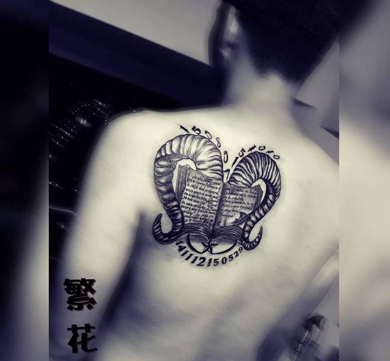 当前位置: 首页 >江苏省苏州市纹身店-苏州繁花艺术刺青纹身图案>羊角书纹身图片_成品手稿肩部背部欧美传统写实国画动物字符纹身图案