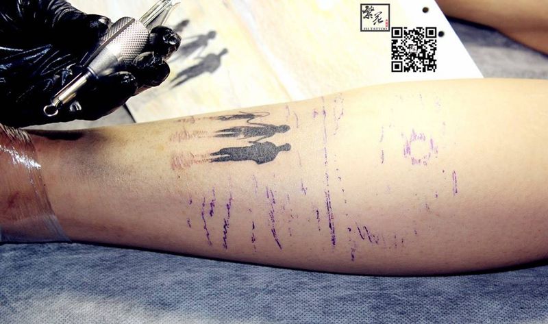 一家三口,幸福之家纹身图片_腿部欧美传统写实成品手稿静物原创人物纹身图案