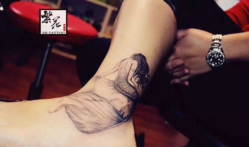 苏州繁花艺术纹身刺青美人鱼纹身图片_腿部脚部成品手稿传统欧美清新人物动物贴纸纹身图案