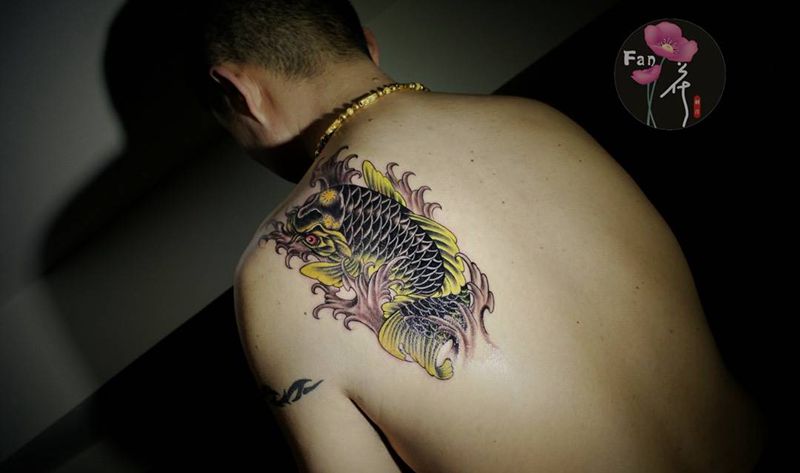 当前位置: 首页 >江苏省苏州市纹身店-苏州繁花艺术刺青纹身图案>苏州繁花艺术纹身刺青鲤鱼锦鲤后背纹身图片_背部腰部肩部成品手稿腹部传统动物人物纹身图案