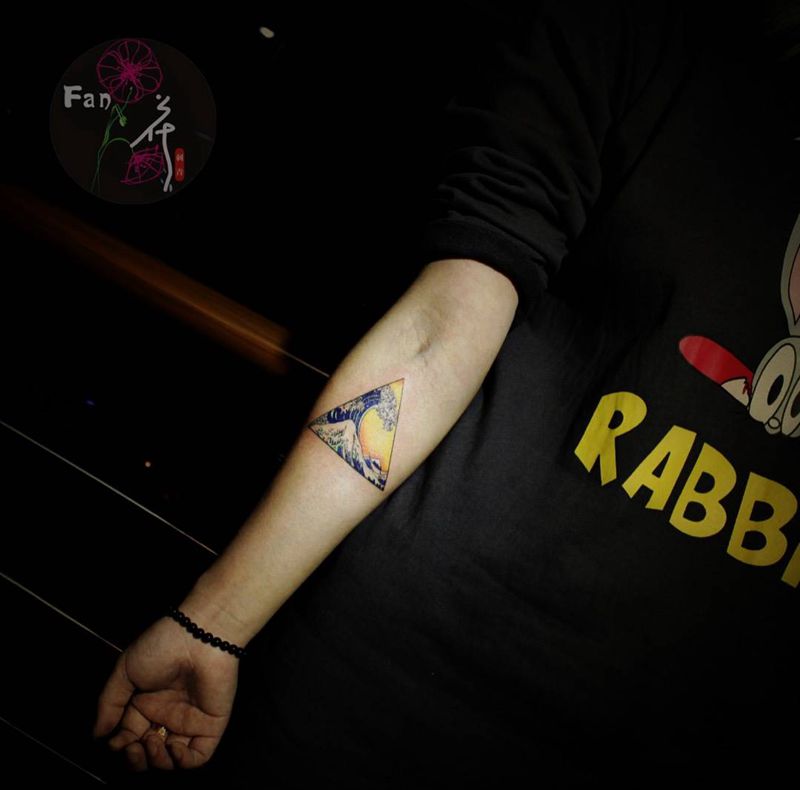 神奈川冲浪里纹身图片_手臂手部成品手稿欧美清新几何人物动物纹身图案