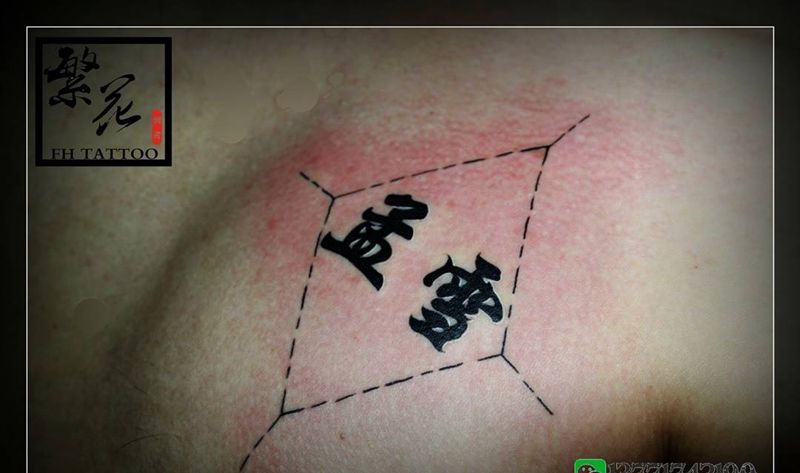 爱人名字纹身图片_成品胸部字符传统几何纹身图案
