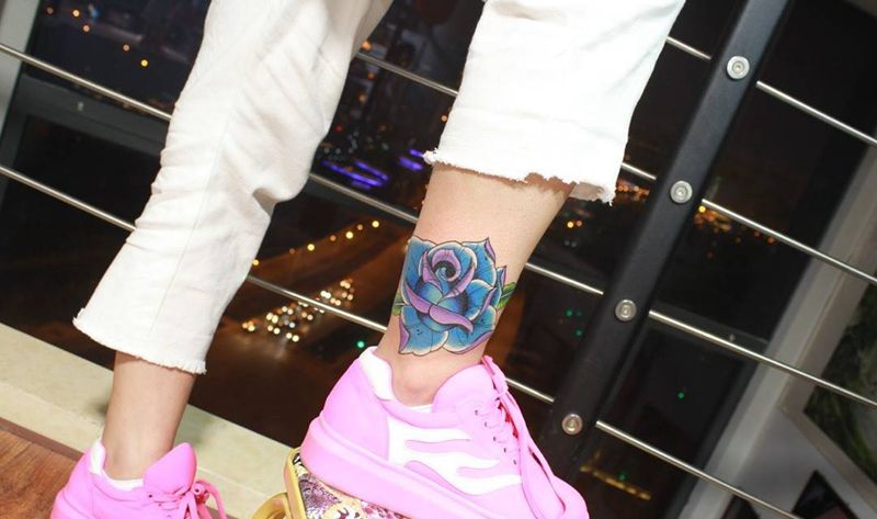 欧美玫瑰纹身图片_成品手稿腿部欧美植物纹身图案