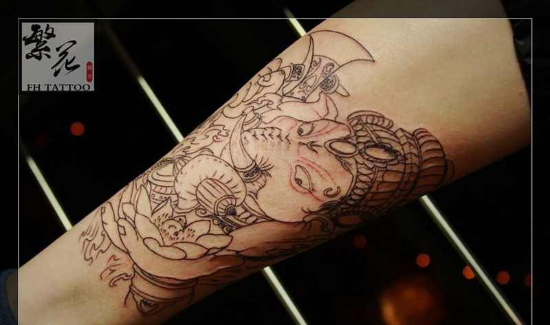 当前位置: 首页 >江苏省苏州市纹身店-苏州繁花艺术刺青纹身图案>象神线稿出纹身图片_成品手稿腿部脚部鬼神动物纹身图案