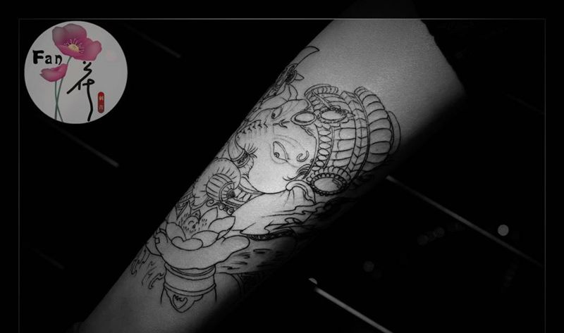 当前位置: 首页 >江苏省苏州市纹身店-苏州繁花艺术刺青纹身图案>象神线稿出纹身图片_成品手稿腿部脚部鬼神动物纹身图案