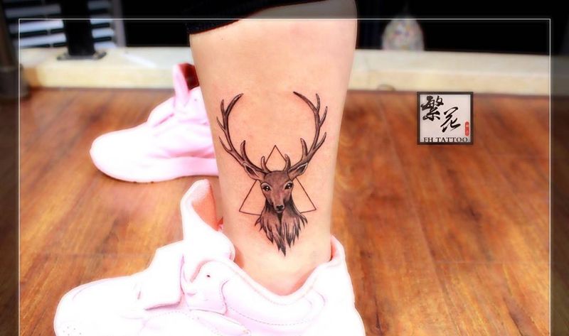 鹿纹身图片_手稿成品脚部纹身图案