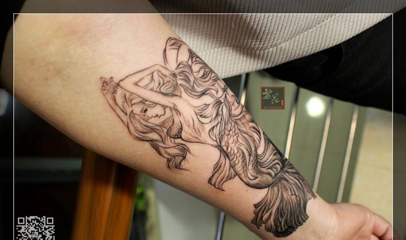 当前位置: 首页 >江苏省苏州市纹身店-苏州繁花艺术刺青纹身图案>美人鱼纹身图片_手臂手部成品手稿动物纹身图案