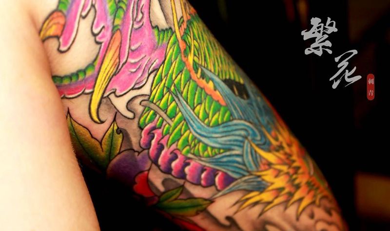 当前位置: 首页 >江苏省苏州市纹身店-苏州繁花艺术刺青纹身图案>龙臂纹身图片_成品手稿手臂手部传统鬼神纹身图案