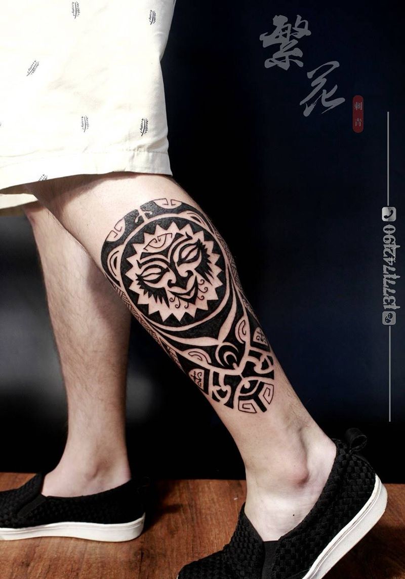 当前位置: 首页 >江苏省苏州市纹身店-苏州繁花艺术刺青纹身图案>异域风情图腾小腿纹身图片_成品手稿腿部腰部图腾几何欧美宗教背部纹身图案