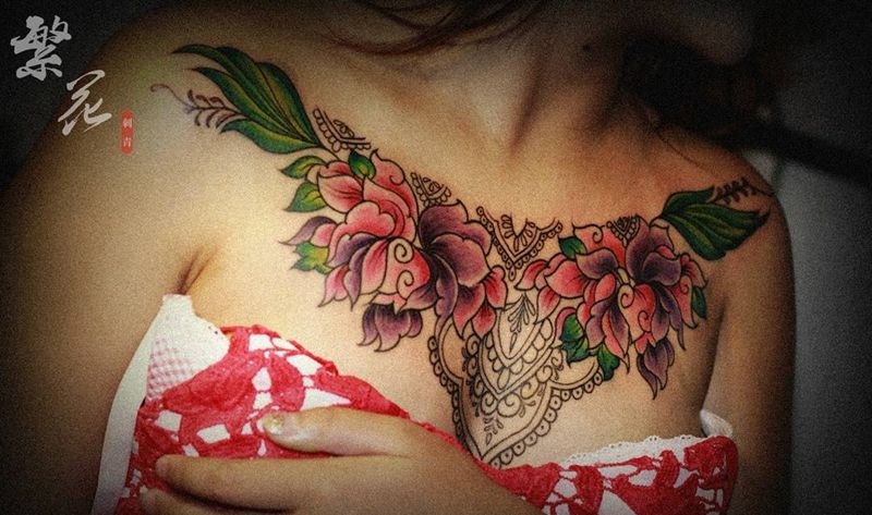 • 女性大花胸纹身_43张霸气漂亮的女性大花胸纹身图案作品