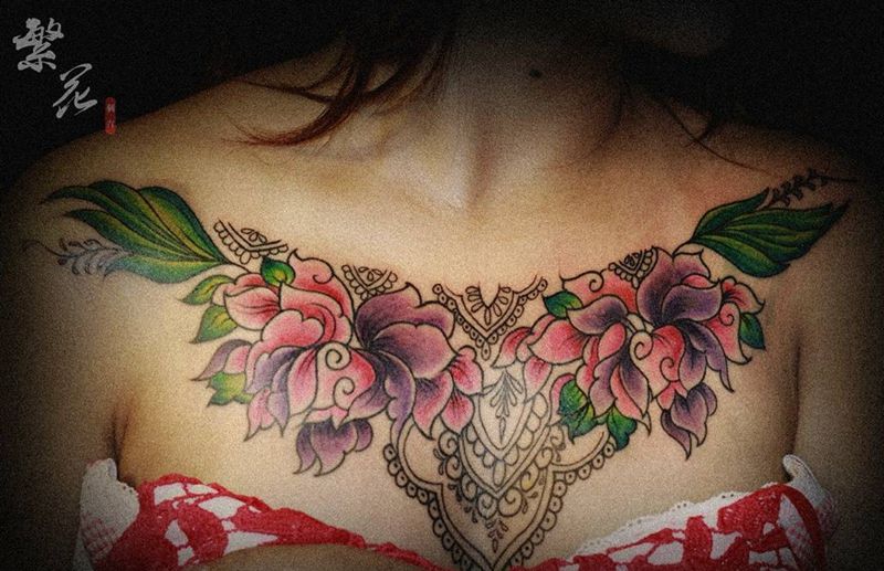 • 女性大花胸纹身_43张霸气漂亮的女性大花胸纹身图案作品