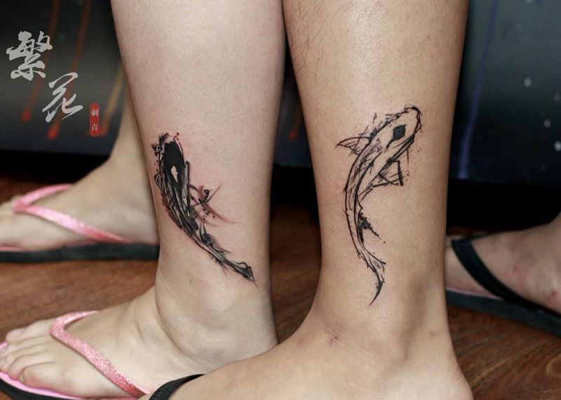 小鱼向日葵遮盖纹身图片_成品手稿手臂手部腿部脚部清新动物植物纹身图案