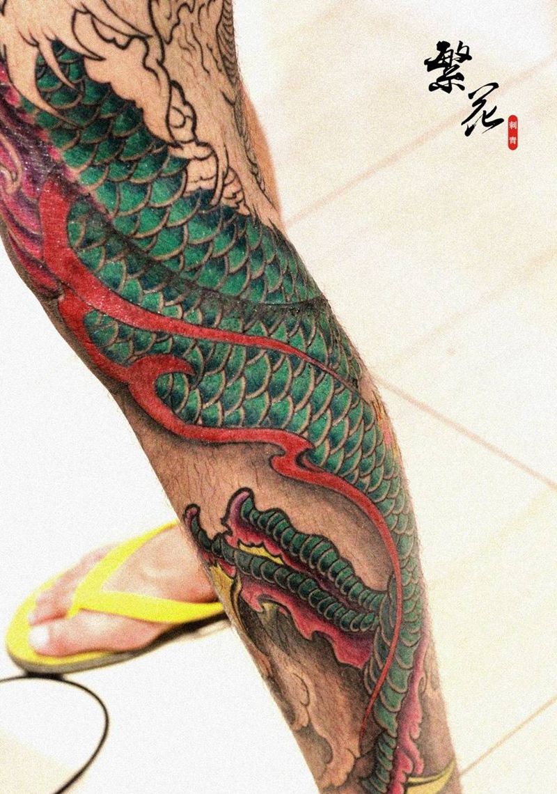 • T网红王老大花腿龙纹身图片_腿部新传统纹身图案