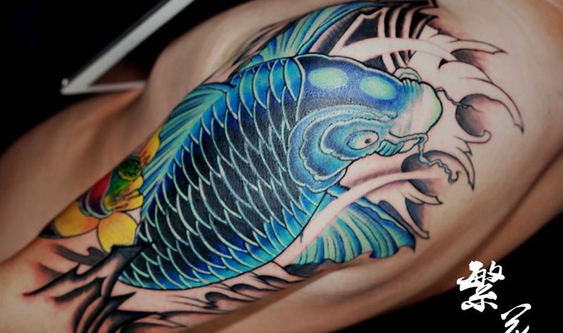 锦鲤纹身图片_成品手稿手臂手部传统动物写实原创纹身图案