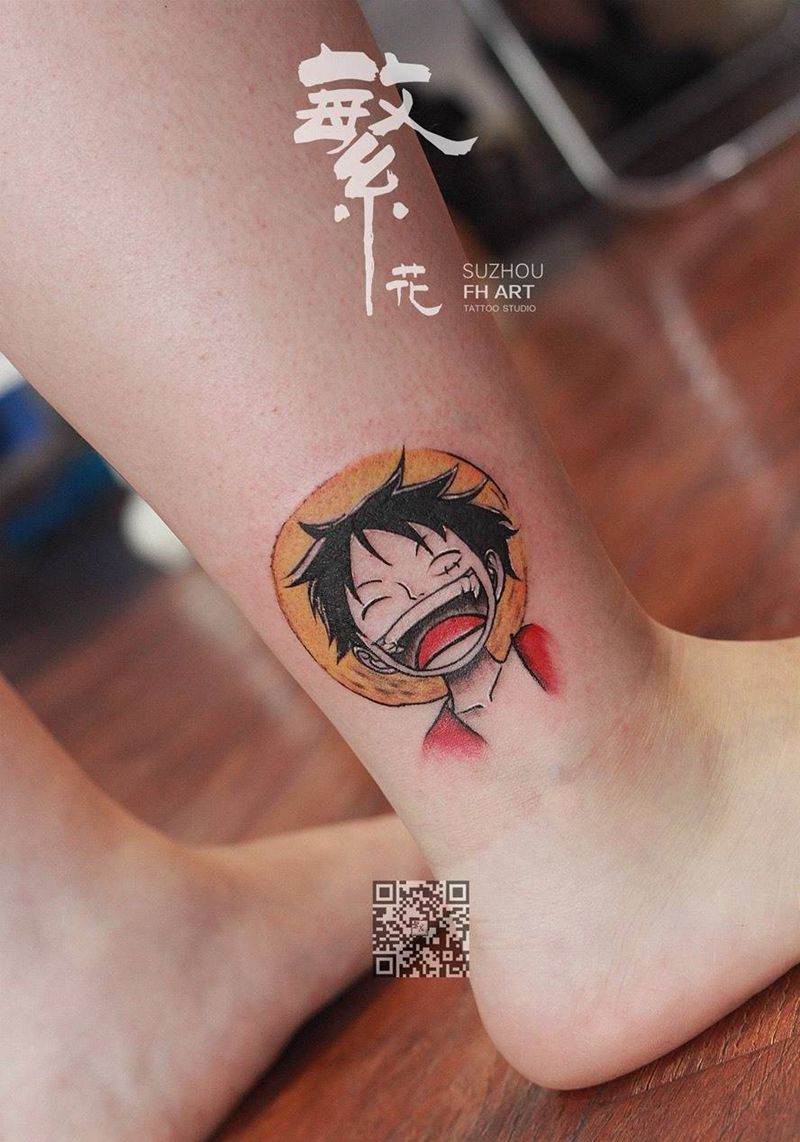 鱼旗 路飞 船锚纹身图片_成品手稿腰部臀部手臂手部腿部清新几何人物纹身图案