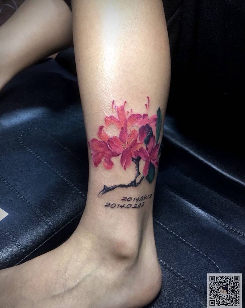 花纹身图片_手稿成品插画腿部脚部清新写实植物纹身图案