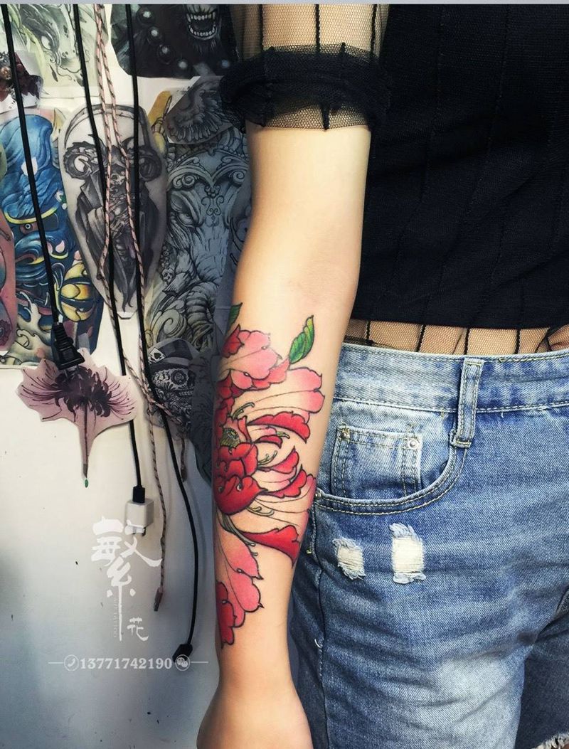 一组15张莲花纹身手