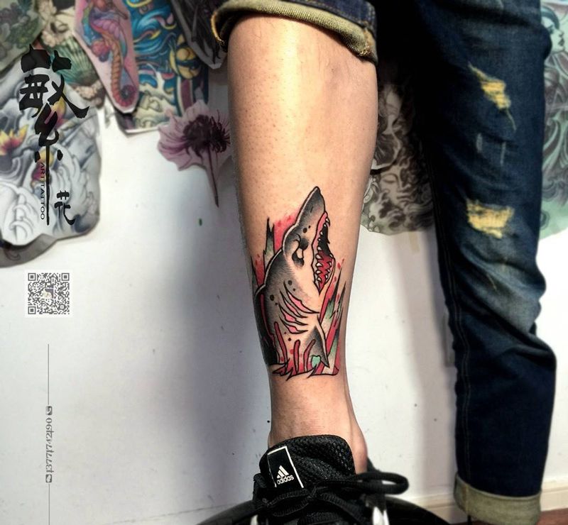 • T网红王老大花腿龙纹身图片_腿部新传统纹身图案