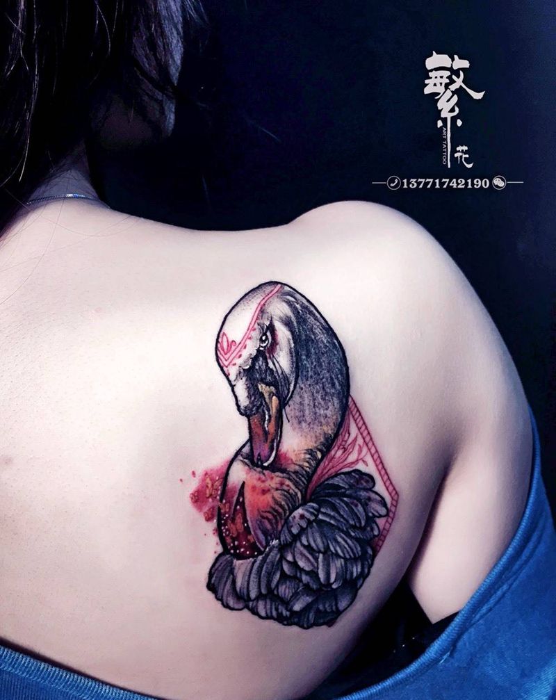 天鹅纹身图片_成品手稿肩部背部欧美清新写实动物原创纹身图案