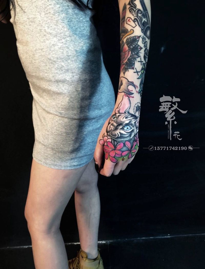 当前位置: 首页 >江苏省苏州市纹身店-苏州繁花艺术刺青纹身图案>斯芬克斯猫 无毛猫纹身图片_成品手稿手部手臂清新写实动物纹身图案