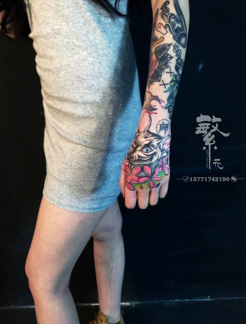 当前位置: 首页 >江苏省苏州市纹身店-苏州繁花艺术刺青纹身图案>斯芬克斯猫 无毛猫纹身图片_成品手稿手部手臂清新写实动物纹身图案